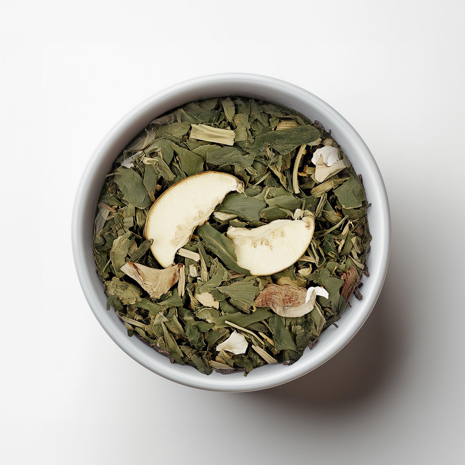 Apfel- und heimische Fruchtnoten ergänzen die feinherben Nuancen des grünen Tees und sorgen für einen ausgewogenen Teegenuss.