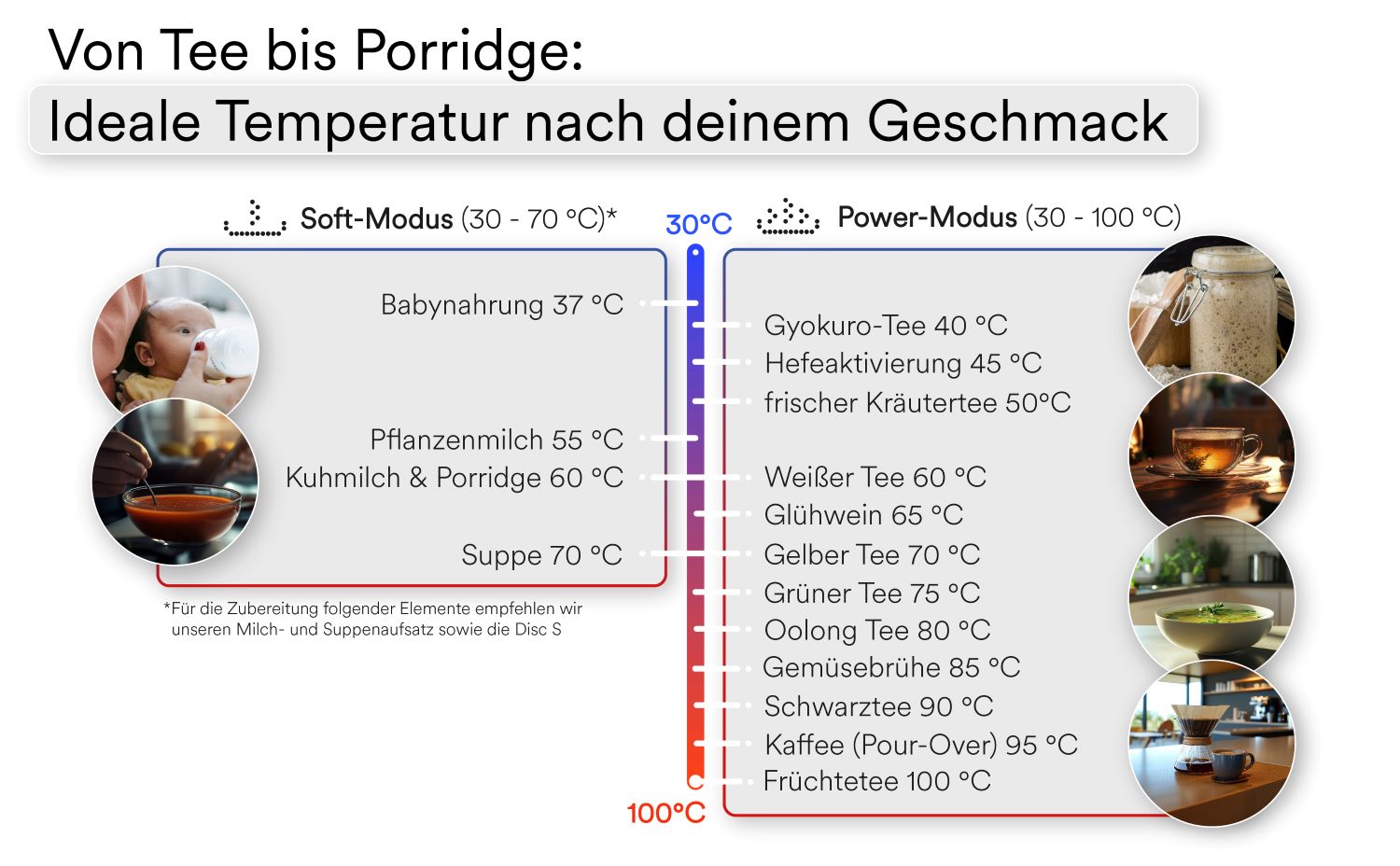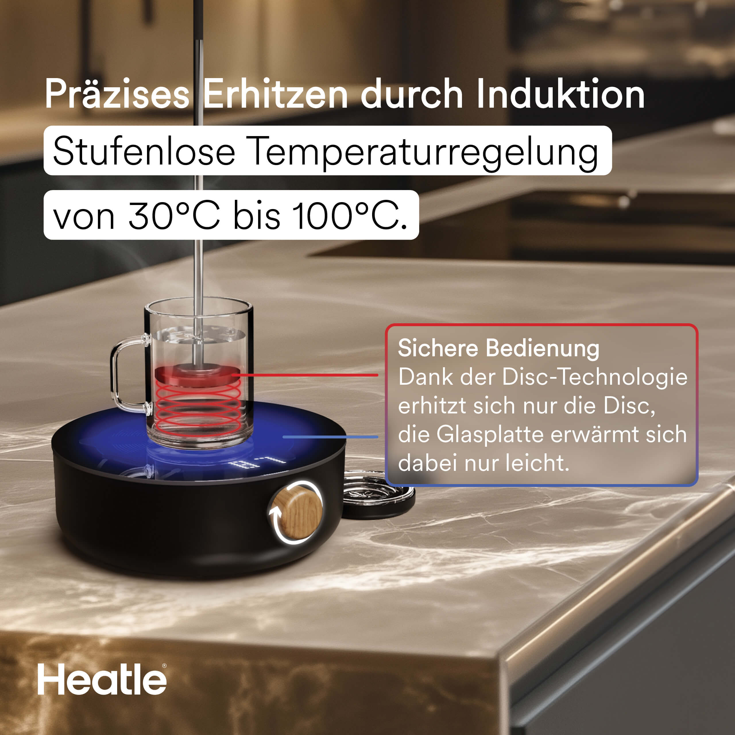 Stelle den Stab mit der Scheibe in dein Gefäß und lasse den Heizprozess automatisch beginnen
